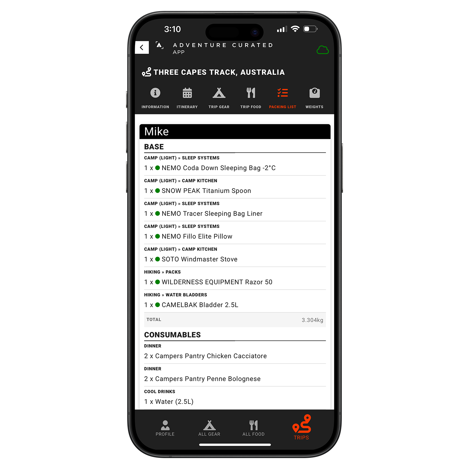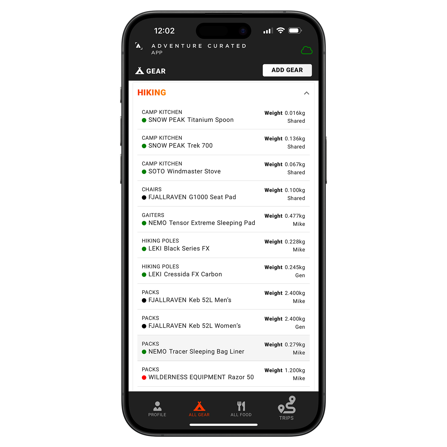 » Organise and catalogue your gear ready to effortlessly add to all future trip packing lists.