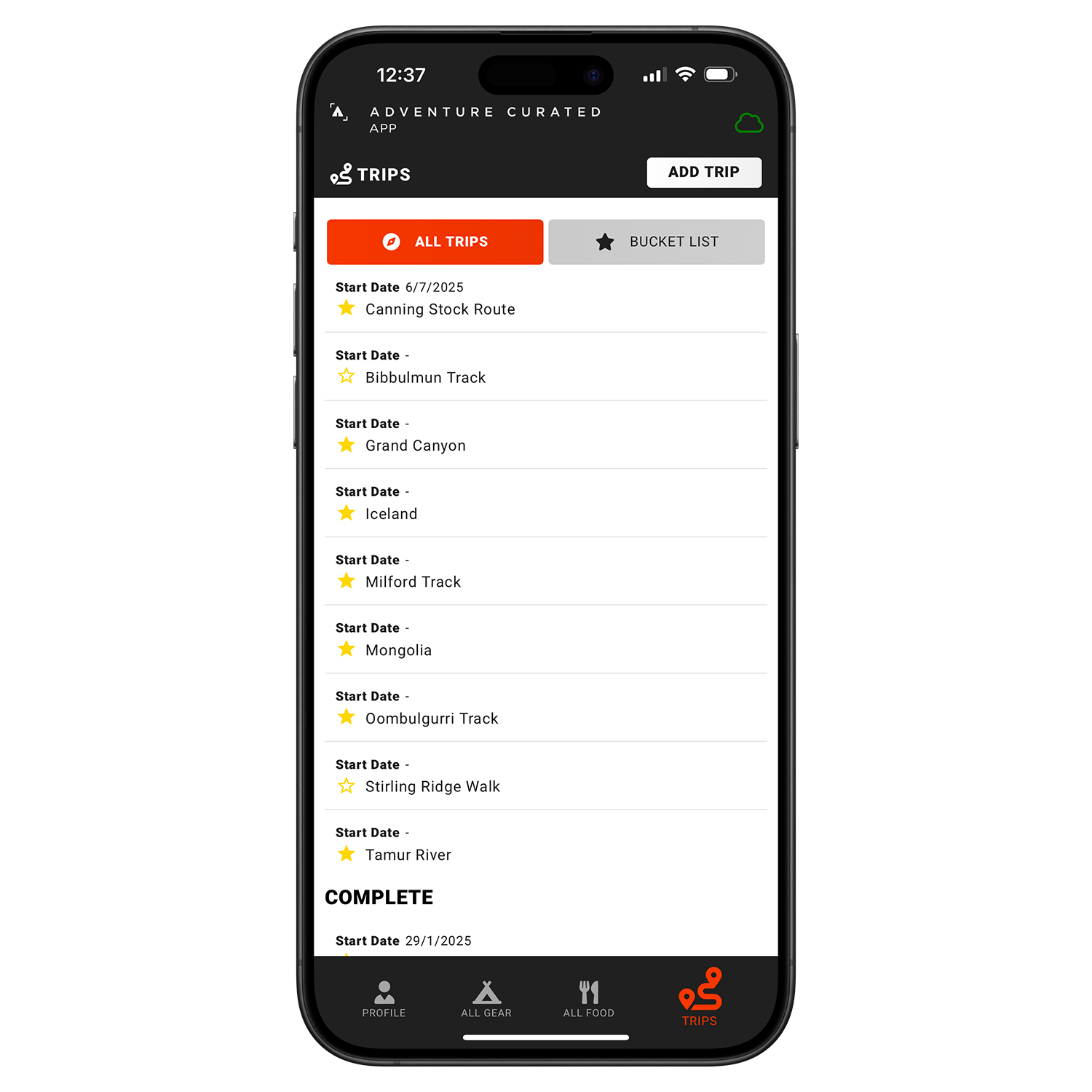 » Add trips to your Bucket List by selecting the star.